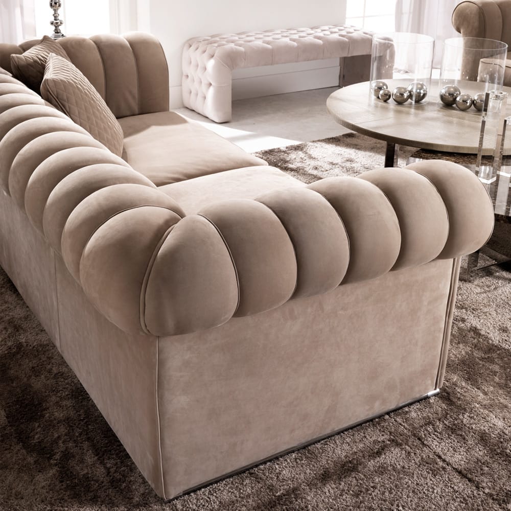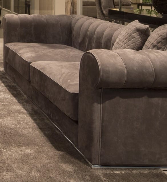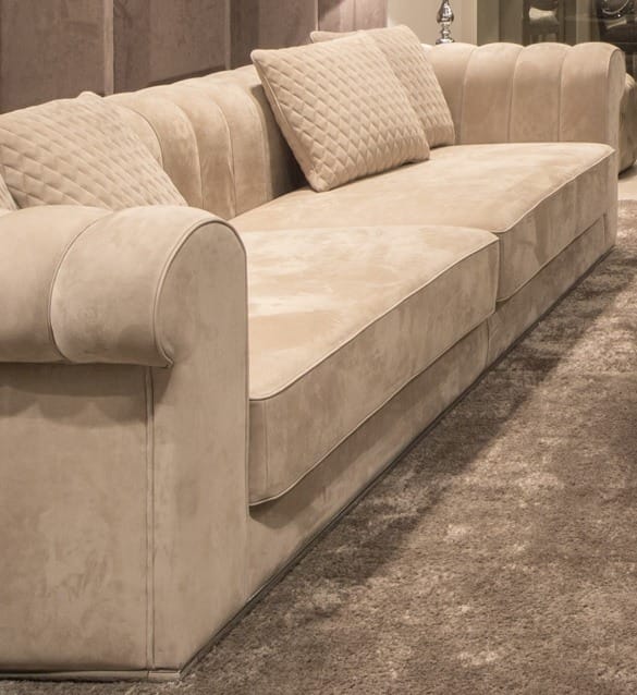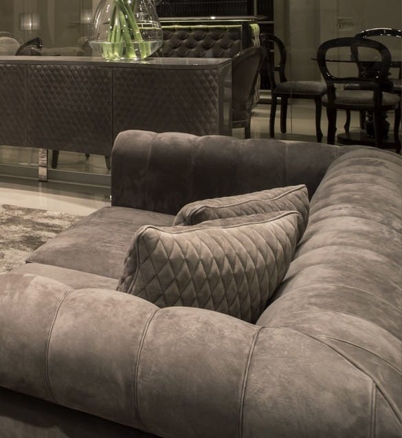 Available upholstered in alternative leathers and nubucks, including faux leather and suede, also other luxury fabrics including customers own. Available in in three sizes as standard, measuring height 78 cm x width 238 cm x depth 110 cm. Height 78 cm x width 286 cm x depth 110 cm as shown. And height 78 cm x width 334 cm x depth 110 cm. Seat heights 48 cm on all sizes. Please note that the matching 4 nubuck quilted 50 cm x 50 cm scatter cushions are not included in the price but are also available. Bespoke sizes on request. Made to a world class standard.