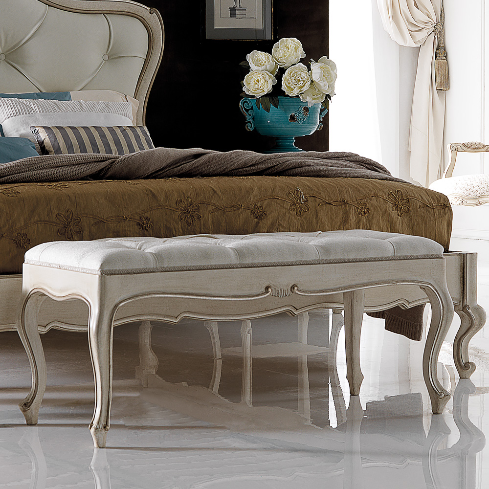 This bench is part of a bedroom set, pictured and also available. Made to the highest of standards. Allow 12 weeks for dispatch. The subtle finishes of the unique Florence Collection with every detail designed to be exclusive. Classic contemporary furniture for intimate rooms, a selection that surprises and moves all for its delicate perfection with a perfect balance between a striking room and the deepest concept of the “home.” Finished in water-based paints and coated with natural oils and waxes, creating an environmentally friendly finish. The range is of very high-quality finished products, made wholly in wood and distinguished in every detail by mainly artisan hand work; mostly chiselled and finished by hand.