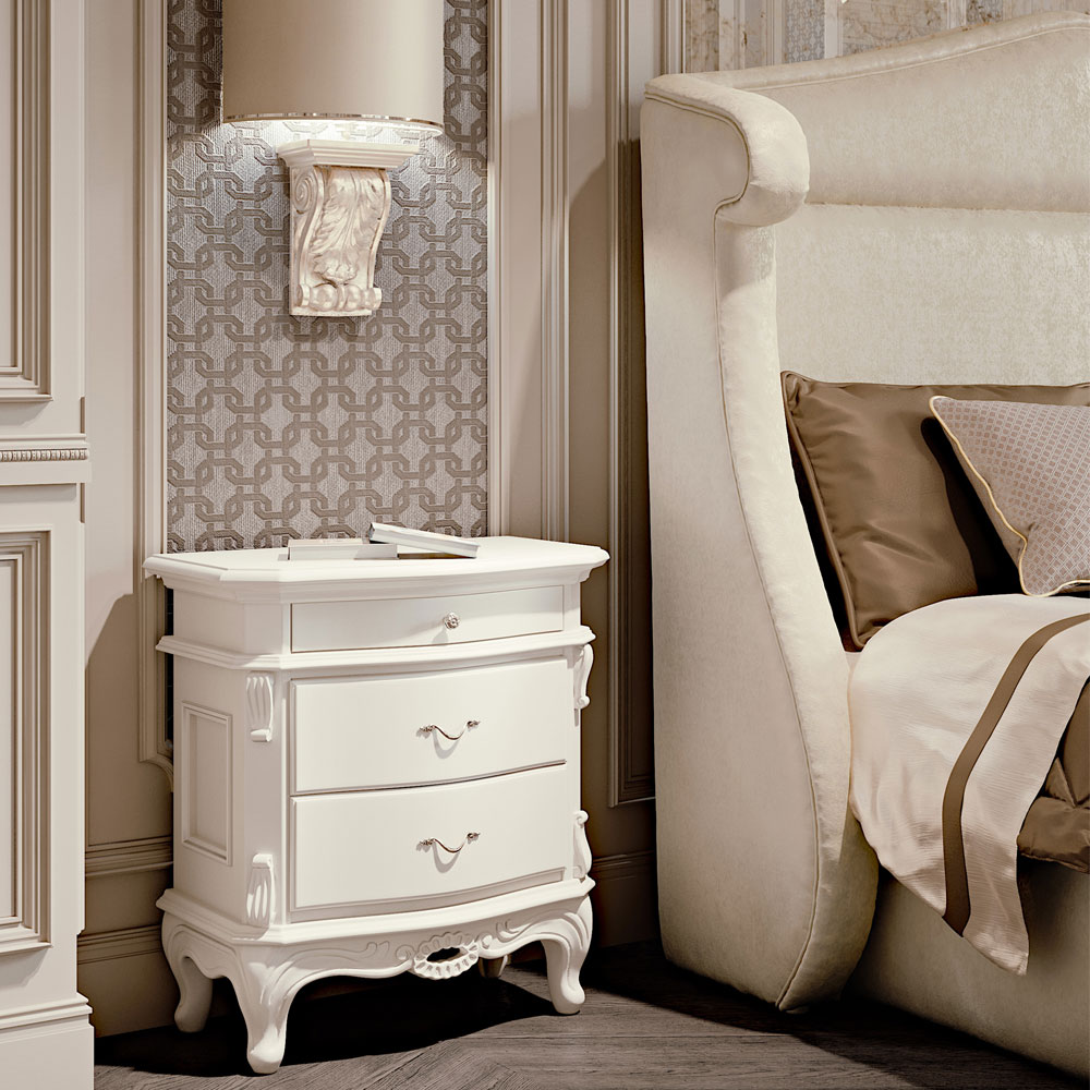 The Louis Reproduction Bedside Table is truly exquisite. Its stylish design and beautifully carved features make a superb addition to any bedroom setting, as a side table or a welcome in a hallway. Truly versatile. Impeccably executed by Italian master craftsmen, its distinct style adds a touch of sophistication and glamour to both classic and contemporary interiors.