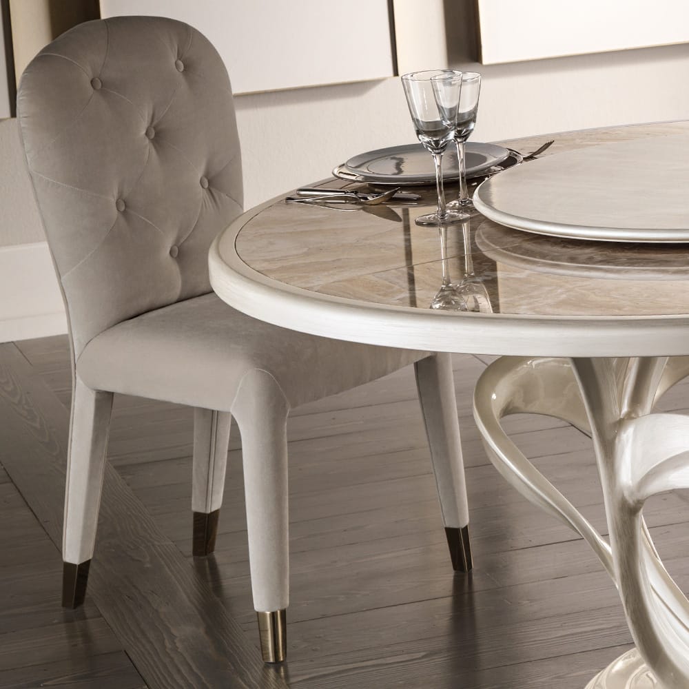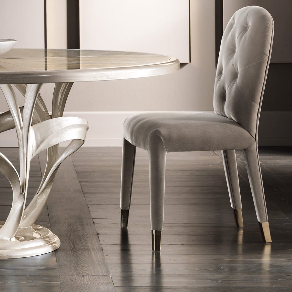 Luxury Italian Button Upholstered Nubuck Dining Chair