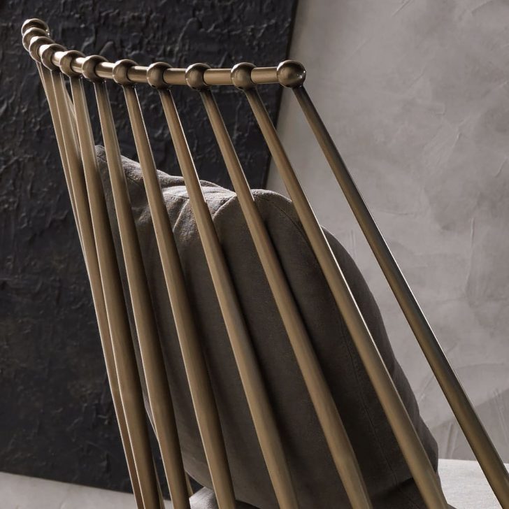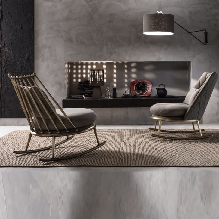 Luxury Italian Designer Brass Rocking Chair. Effortlessly stylish and impeccably handcrafted, this luxurious rocking chair offers the ultimate in Italian style and comfort. An elegant piece to complete a chic living room, library or bedroom. A touch of sophistication and timeless glamour, furnishing your home with impeccable style.