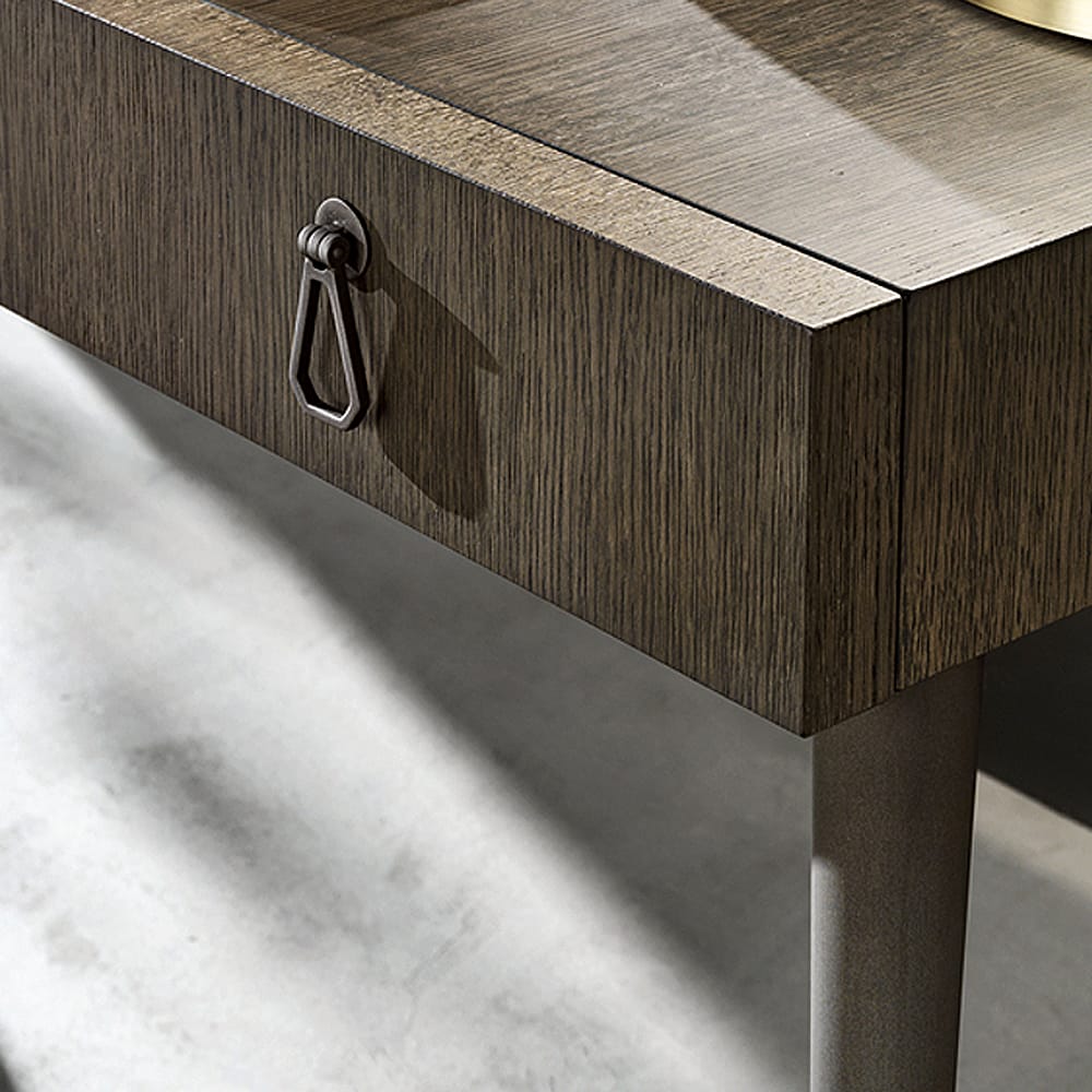Measuring height 52 cm x width 147 cm, which can extend to 240 cm x depth 40 cm. A distinct wooden structure of clean lines, beautifully finished in a carbon oak veneer. This remarkably sleek media table boasts an extendable top, in the same luxurious finish. Built to suit your every need. Featuring a polished internal display shelf in each compartment, providing a truly fabulous storage solution. Complete with feature metal legs in a black nickel finish, beautifully handcrafted by the finest Italian furniture makers. An exquisite refined contemporary design. Available in alternative luxury finishes, including a traditional oak finish, a cream oak finish and in a high gloss lacquered finish in a matt grey or ivory. Prices will vary.