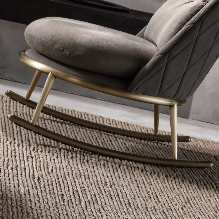 Luxury Italian Quilted Nubuck Leather Rocking Chair