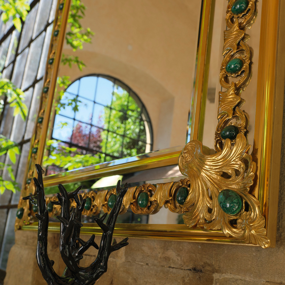 The Luxury Mirror With Green Malachite Details offers unmistakable handcrafted Italian style and glamour. A stunning mirror which adds more than a touch of luxury to any setting. Ideal for over a fireplace, hallway or luxurious bedroom setting. Designed to add perfect grace and form to any interior.