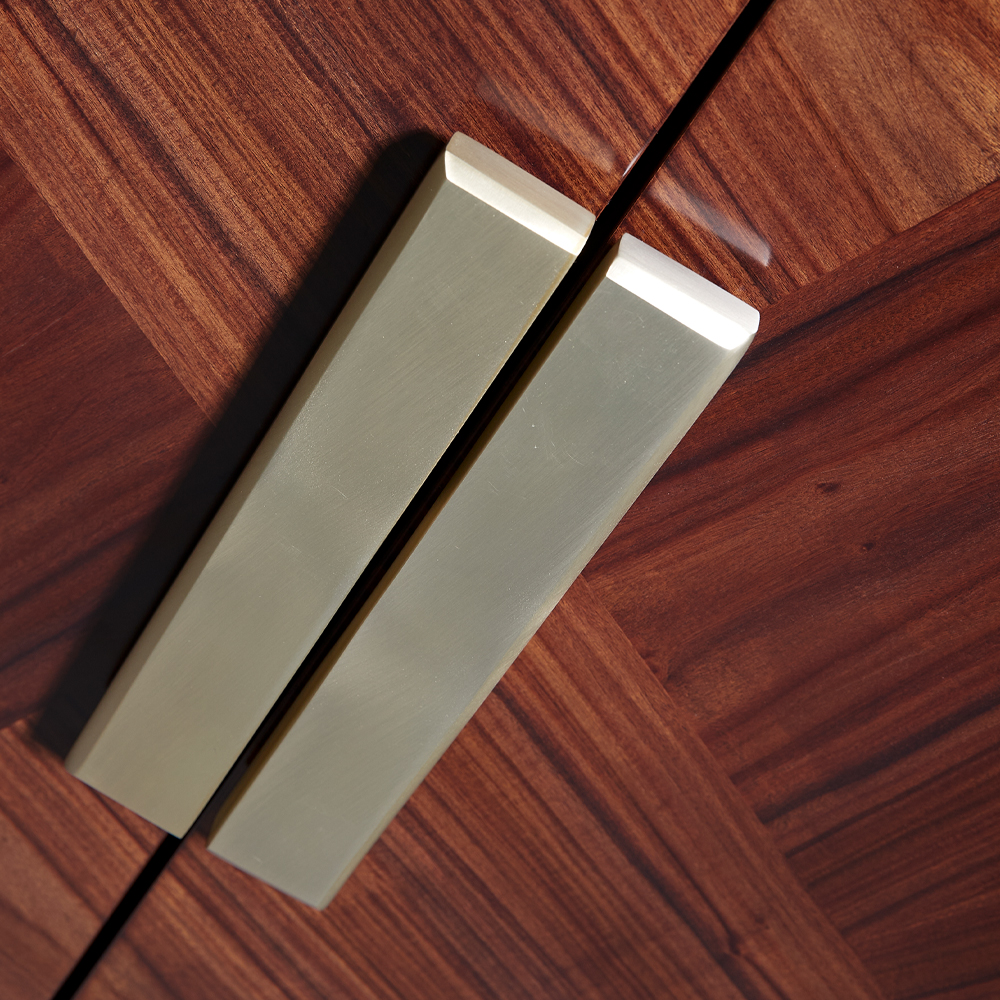 This decadent cabinet is showcased in a satin dark rosewood veneer and imperial dark marble top. This is seamlessly complemented by sleek brass metal detailing. Features two drawers and inner door compartments, alongside a glass shelf for ample storage space. Complete with integrated LED lighting and a mirrored back panel. Alternative metal, wood and marble finishes are available upon request. Prices will vary.