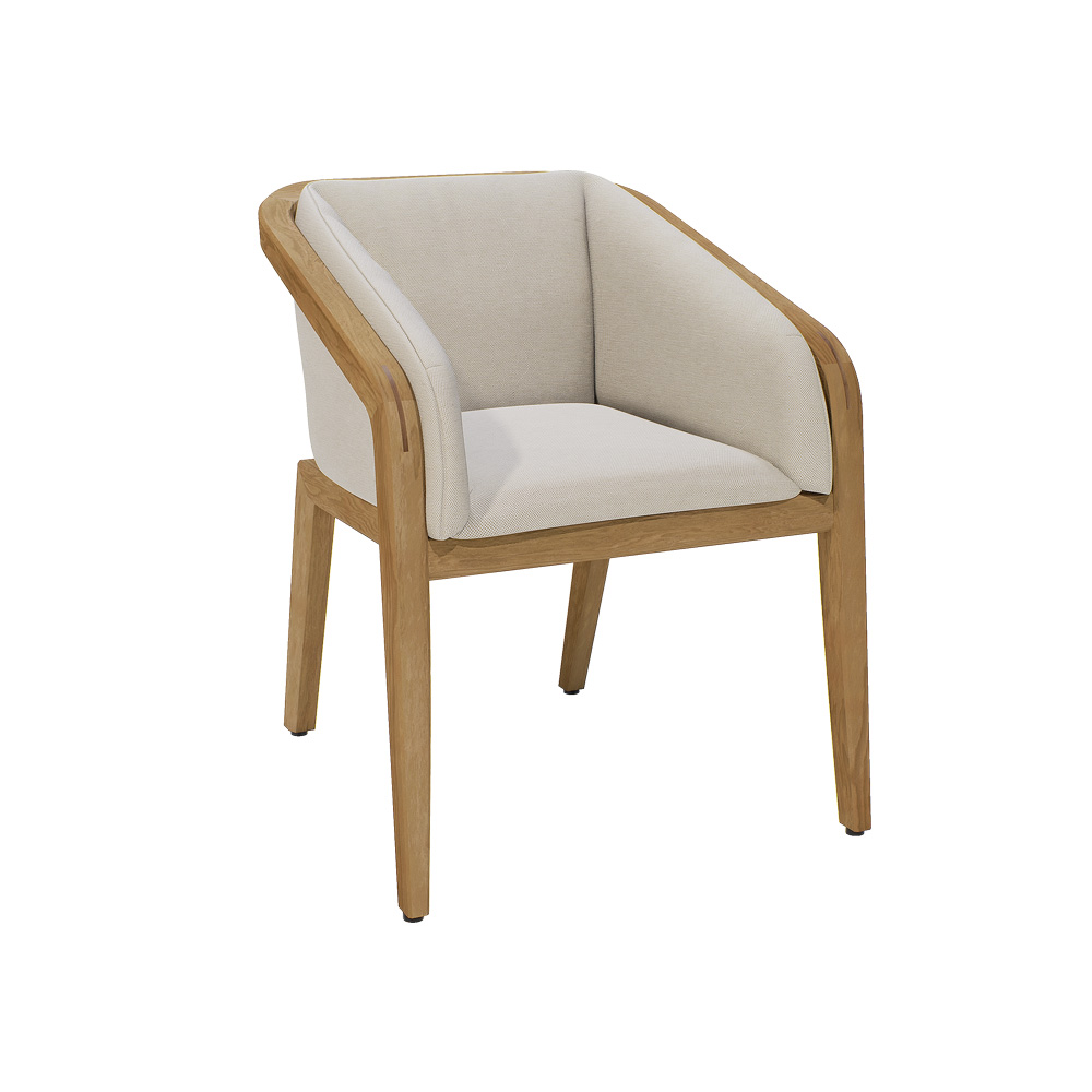 Clean lines and strong curves add to the collections ageless appeal. The warmth of its materials and welcoming form offer an irresistible invitation. Brushed Teak and light tones giving a certain prestige, offering the ultimate in comfort. Superbly executed by master craftsmen this design is outstanding in its use of luxury materials and attention to detail. Swimming pool and sea water resistant and repellent. Easy to clean and maintain. Recyclable, GreenGuard certified, REACH certified. The finest of All Weather Fabrics, that have been specifically developed for outdoor use. The fabric is mass-coloured, UV-resistant and does not fade under the influence of light or sunshine. Also available in a Dark Teak finish, and in a variety of fabric combinations as shown. This design is part of a fabulous collection, including a sofa, armchair, coffee table and sun loungers. Protective covers also available by request.