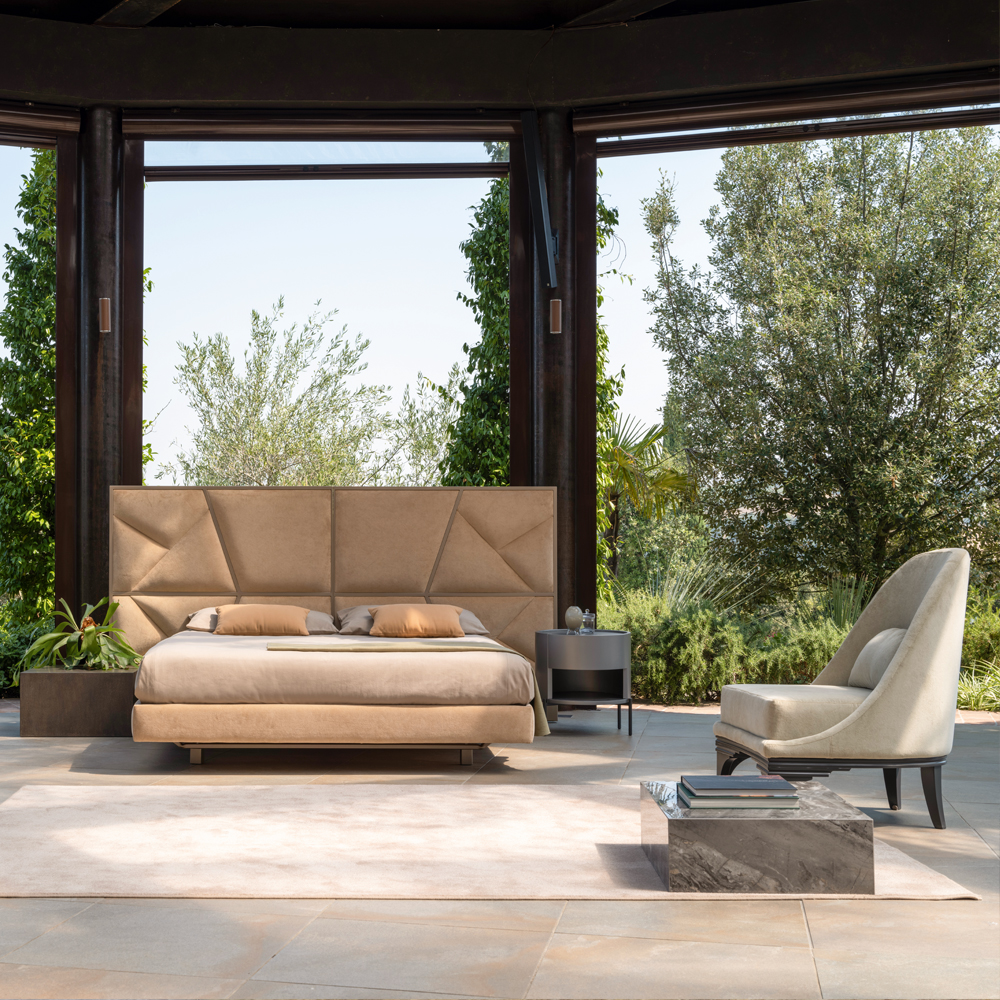 The Modern Abstract Upholstered Bed, a beautiful bed that epitomises modern Italian furniture and truly reflects refined modern elegance. Offering accomplished modern furniture with unmistakable style and presence. Superbly executed by master Italian craftsmen this design is outstanding in its use of luxury materials and attention to detail.