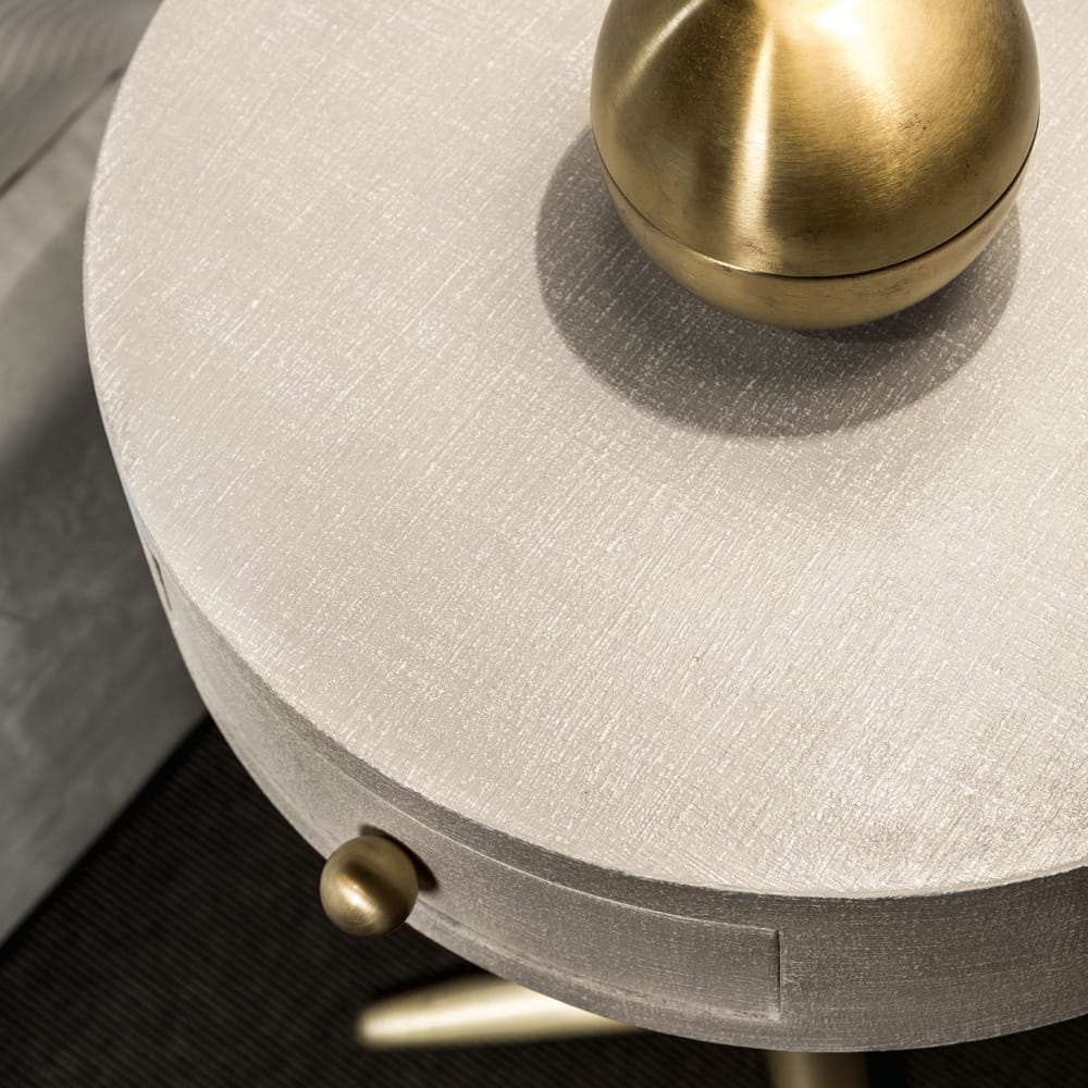 The Modern Designer Round Bedside Cabinet With Drawer is effortlessly stylish and impeccably handcrafted. This bedsides statement design makes a superb visual impact for distinguished interiors. Every detail of this luxurious design is carefully considered, adding a touch of elegance and timeless glamour. A versatile piece to complete a chic bedroom, use by side of the sofa or as a welcome in the hallway.