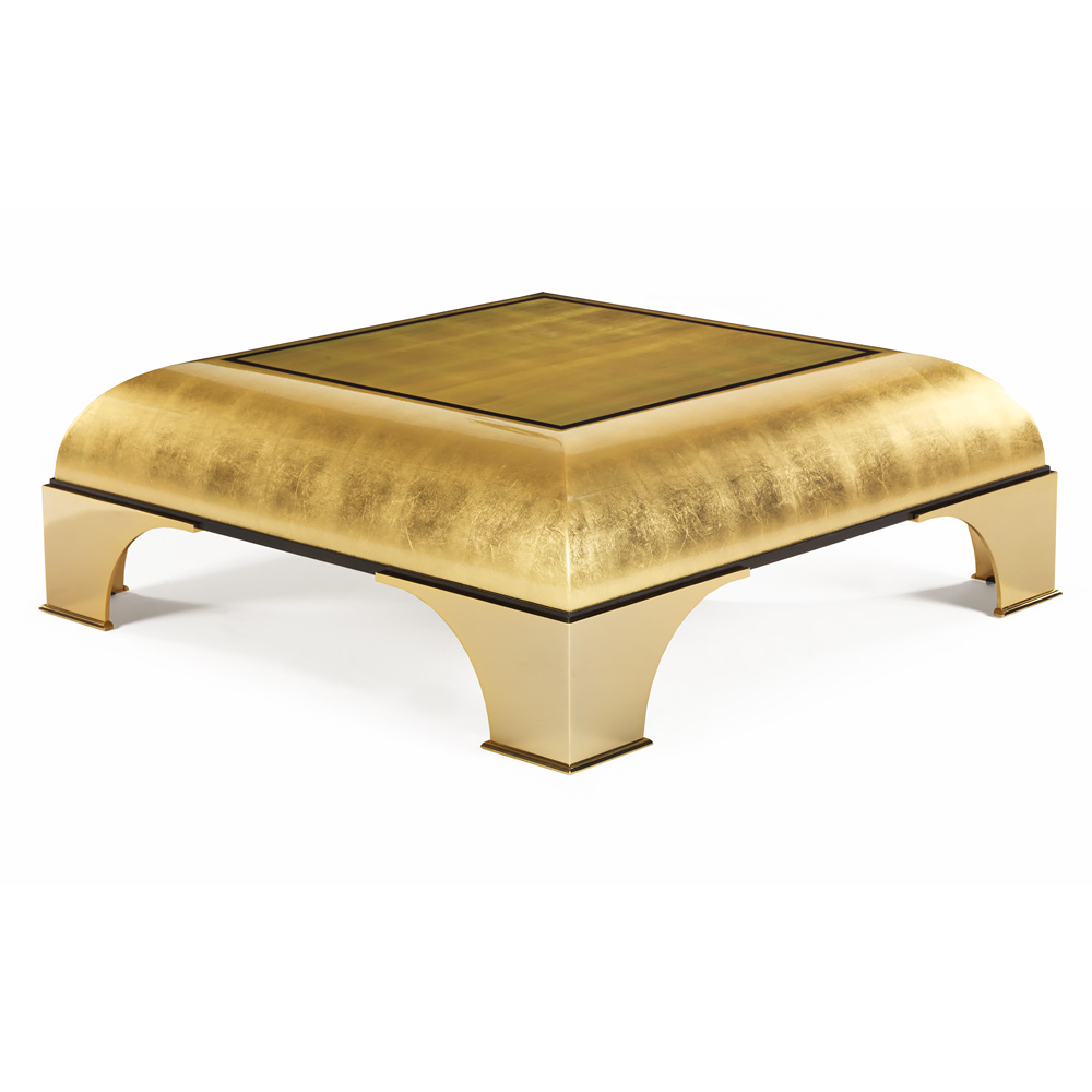 A beautiful structure with polished brass feet and a wooden top in a striking refined gold leaf finish, creating the most dramatic effect. Available in alternative finishes and customised sizes. Prices vary. Please allow for 9 weeks production depending on the exact specification chosen. Made to a world class standard in Italy with a unique attention to detail, creating a sublime atmosphere for your home.