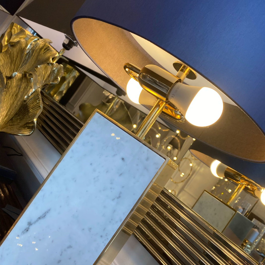 The Modern Marble Designer Gold Table Lamp With Blue Shade is a touch of sophistication and style, designed for diffused or downward lighting. Offering the versatility to be the perfect addition to any setting. As comfortable in a sitting room, bedroom, kitchen or study as it is as a welcome in an entrance hallway. To suit both a classic or contemporary interior. Adding the utmost in glamour, but equally perfect in its simplicity. The epitome of pure elegance, of outstanding Italian style and design where classic inspiration meets contemporary glamour.