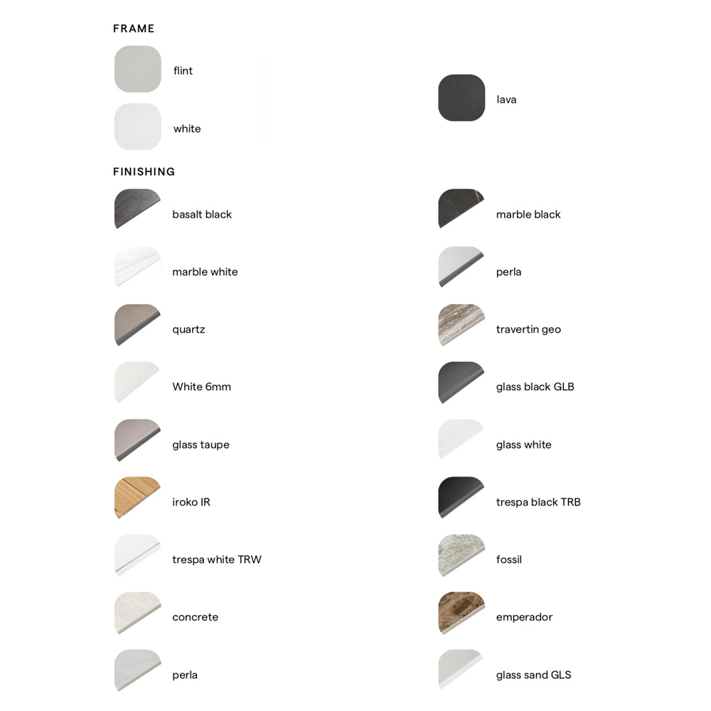 The side table is slender and lightweight with its ultra-light frame. In a white, flint or anthracite powder coated aluminium finish. Shown here in a flint finish with a contemporary brushed teak slatted top. Each piece created by hand. Height 44.5 cm x diameter 42 cm. Easy to clean and maintain. Various combinations are available, Italian in style featuring sophisticated faux marble tops in both black and white as shown, Scandinavian in style with solid coloured ceramic stone tops such as fossil, travertine or basalt black, acid etched glass and finally, a monochrome white ceramic version.
