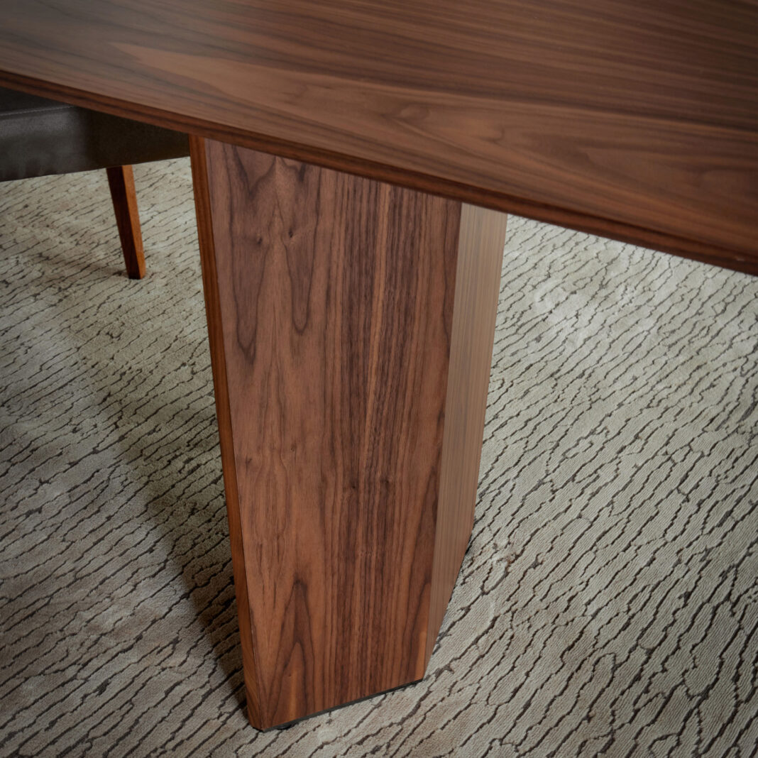 The Modern Rectangular Veneer Dining Table exudes modern luxury and sleek sophistication, making it a striking addition to your dining room or boardroom. Clean lines and subtle curves create a sense of calm, contemporary elegance, while its balanced proportions ensure a refined presence. Designed for both style and practicality, providing generous space for dinner gatherings and professional use. Crafted with straight lines and a minimalist aesthetic, the table presents a sturdy yet lightweight silhouette, blending understated elegance with everyday functionality.