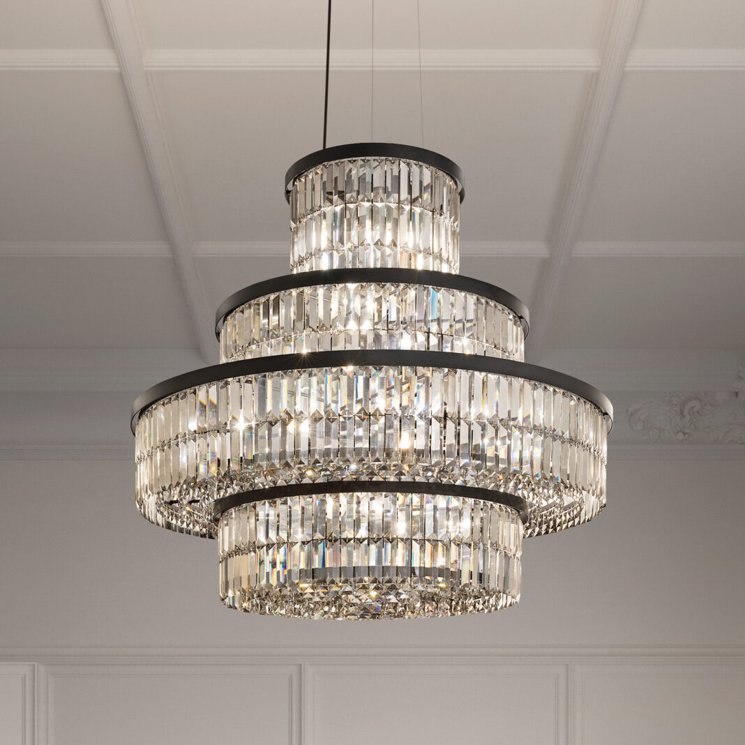 The Modern Smoked Cut Crystal Tiered Chandelier beautifully combines contemporary elegance with timeless charm. More than just a light fixture, this dazzling centrepiece makes a striking statement, casting a warm, luxurious glow. Perfect for high ceilings and grand spaces, it adds a touch of sophistication and opulence to any setting.