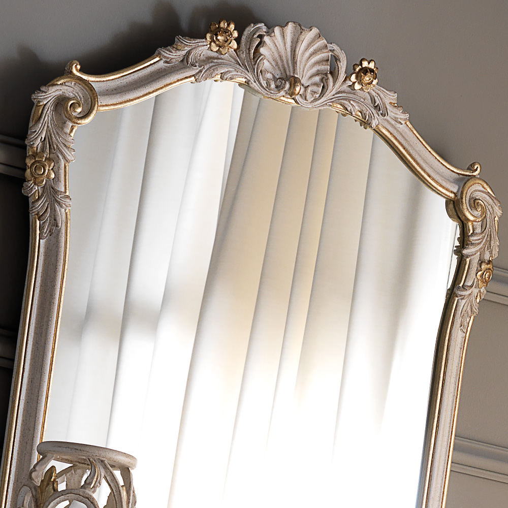 The Ornate Italian Ivory and Gold Rococo Mirror is a statement of style and glamour for any room in the house. A touch of classic beauty for any setting. The most beautiful welcome in a hallway, but also just as fabulous over a fireplace too and equally as perfect over a chest of drawers as shown. Truly versatile. Shown here in an antiqued ivory finish together with hand painted antiqued gold to the elaborate carved details. Height 100 cm x width 72 cm. Alternative frame colours, sizes and finishes are also available. Paired here perfectly paired with the Ornate Italian Rococo Chest of Drawers, height 87 cm x width 128 cm x depth 56 cm. The drawers have an integrated soft close blumotion system for effortless closing and added luxury. Available as a set as shown, or separately. Made to highest standards. Allow 12 weeks for dispatch.