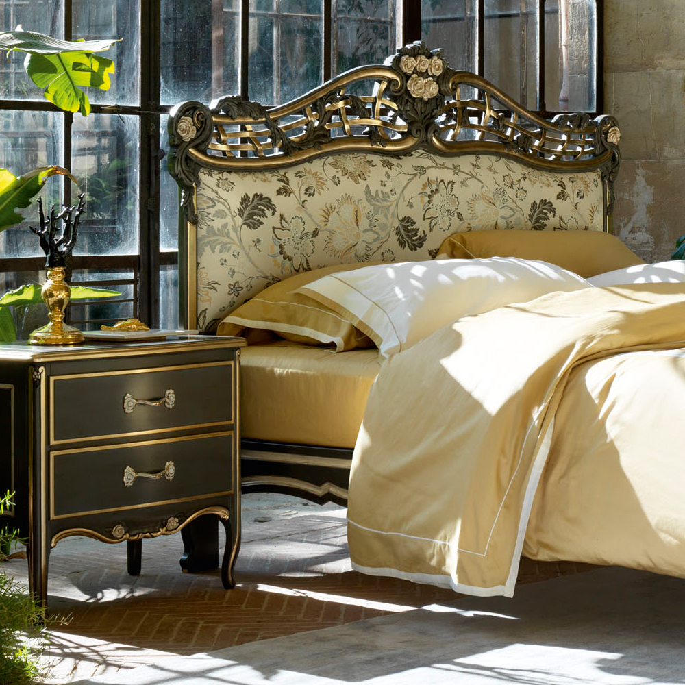 The Ornate Upholstered Italian Bed is part of a beautiful collection that epitomises the classic style expressed by Italian furniture. Truly reflecting refined elegance, of Baroque inspiration. Offering accomplished opulent furniture with unmistakable style and presence.