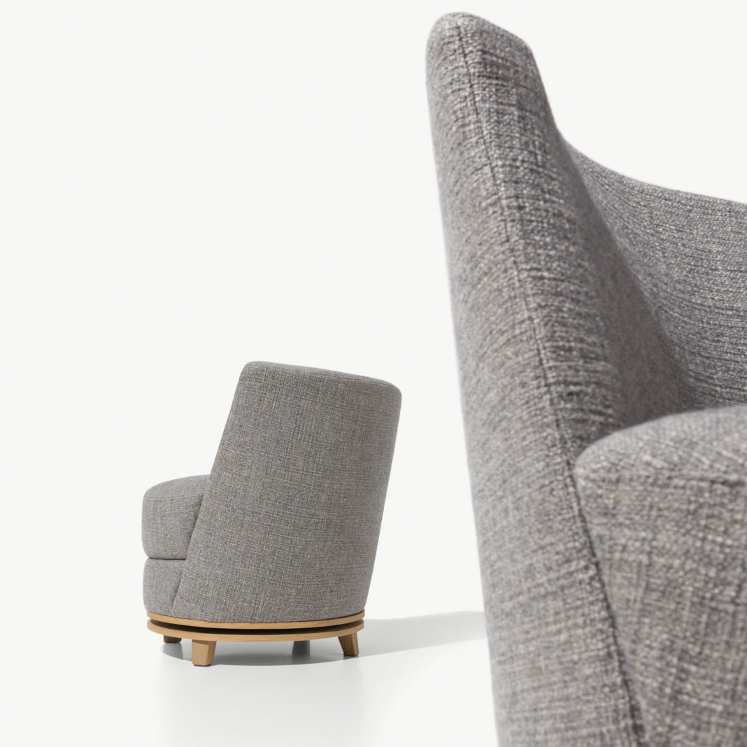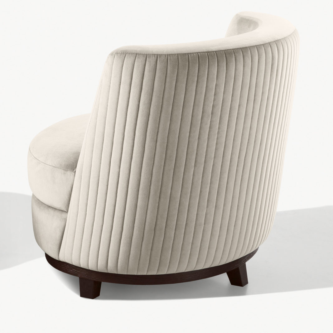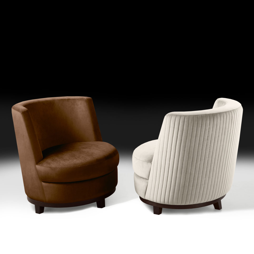 The Curved Occasional Chair With Swivel Base is simply exquisite, and also available as a static style – or with smooth plain upholstery. The perfect statement piece, adding a touch of sophistication and style to any setting. Combining the ultimate in style and comfort. Its luxurious modern design offers unmistakable Italian style and elegance for any interior. Superbly executed by Italian master craftsmen, this beautiful designer occasional chair is both versatile and outstanding in its attention to detail.