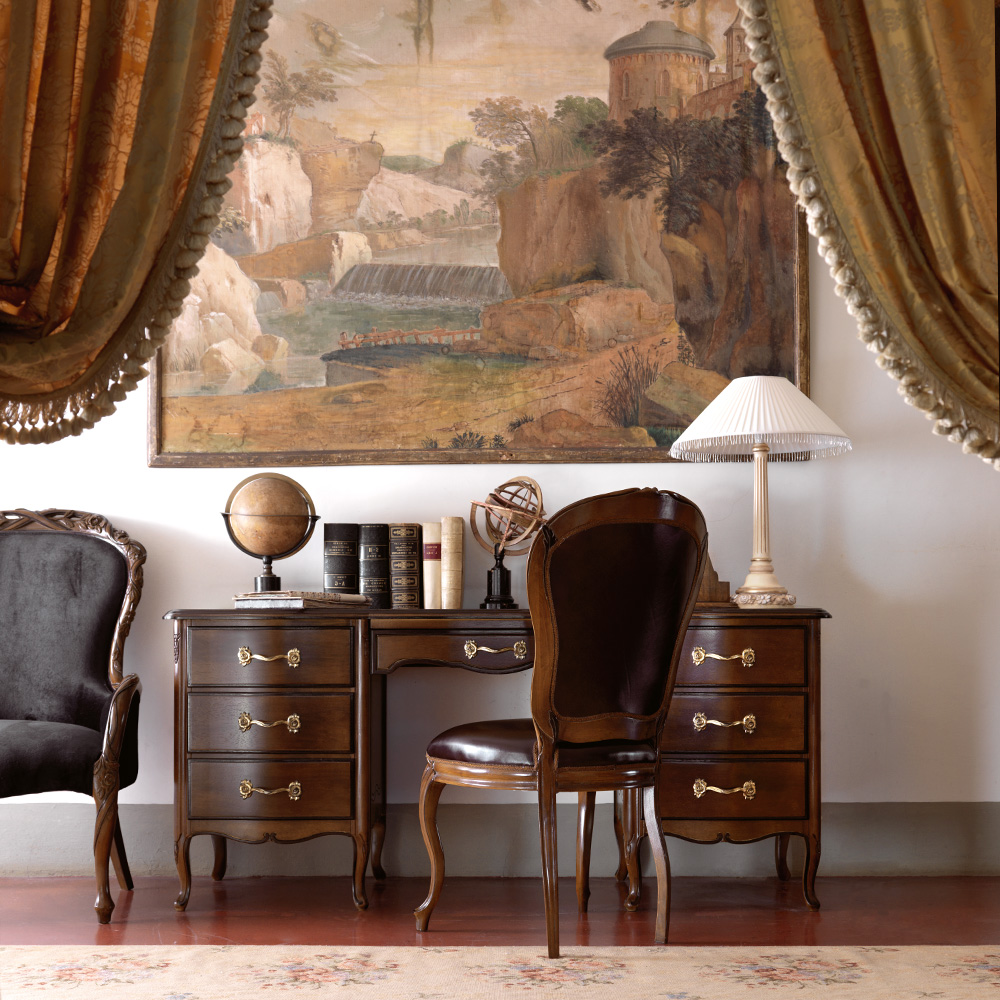 The Reproduction Walnut Italian Desk is Italian design at its finest. A fabulous desk with 7 drawers, designed to add perfect grace and form to any setting. Equally as comfortable as the most elegant of dressing tables for any elegant bedroom. Truly adaptable in its versatility, an ultimately beautiful storage solution.