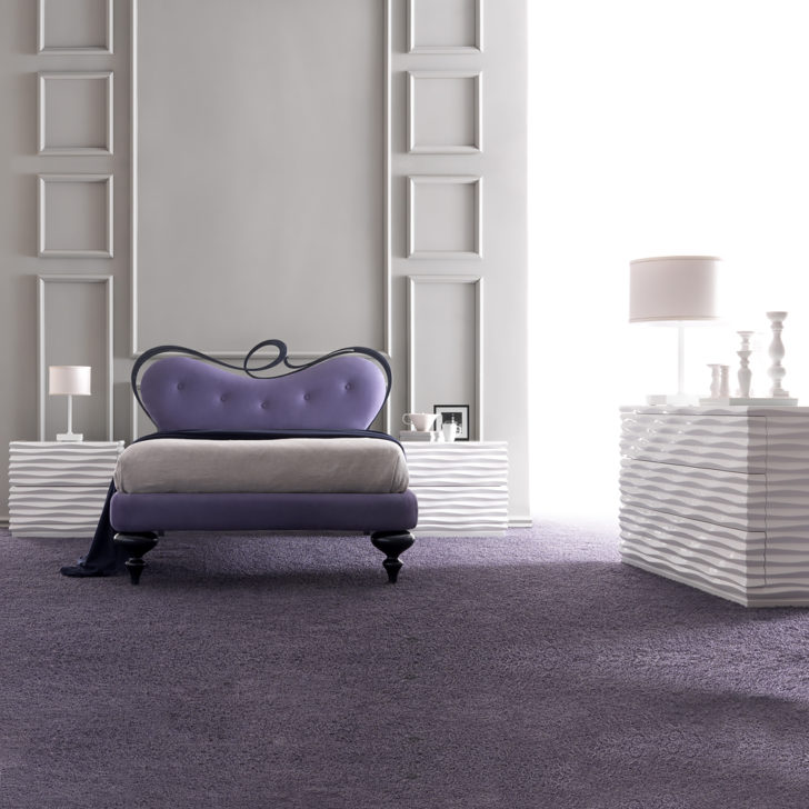 Romantic Nubuck Leather Upholstered Bed. This seductive bed uses sumptuous finishes and textures to make a luxurious statement. This romantic design features a fabulous super soft nubuck upholstered leather headboard. The headboard is designed using voluptuous lacquered wooden curves. The headboard is also available finished in a variety of fabrics, including customers own. The bed frame itself is fully upholstered in the same ravishing leather. Large turned feet complete this beautiful bed. Of superb quality this bed offers the ultimate in supreme comfort and style. Overall height is 121 cm. Dimensions to fit the standard 120 cm x 190 cm mattress, bed width 158 cm x length 206 cm. Overall width an additional 38 cm to mattress size and overall length an additional 16 cm to mattress size. Special sizes available on request. Prices vary. Throws, linen, cushions and bolster cushions available separately. Luxury mattress to fit these dimensions sold separately by Hypnos available with free delivery if ordered with your bed. This bed is part of a bedroom set, also pictured and available. Rippled effect bedside cabinet with two drawers and chest of drawers with three drawers also available, both in a glossy white lacquered finish, plinth base and glass top. Bedside, height 52 cm x width 65 cm x depth 43 cm and chest of drawers, height 76 cm x width 135 cm x depth 50 cm. Made to a world class standard. Please allow 9 weeks for dispatch. Made in Italy with a unique attention to detail, creating a contemporary atmosphere for your home.