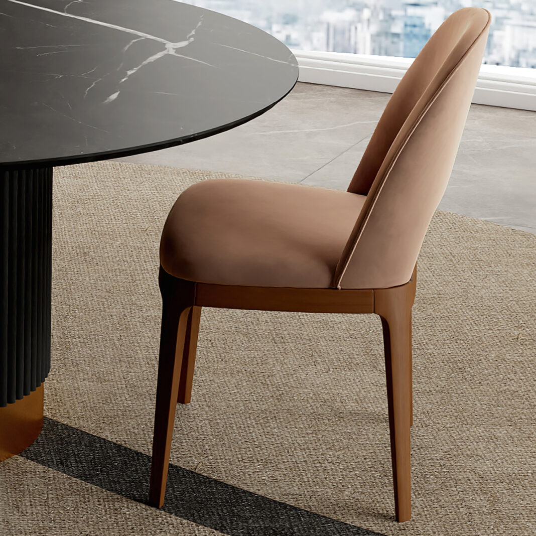 Paired with 4 of the Modern Dining Chairs, blending casual chic style with unique simplicity. Crafted for ultimate comfort, they offer a luxurious seating experience. A wooden structure, padded in foam for the ultimate in comfort and upholstered to the highest standards in the finest velvet fabric with defining piping detail and cut out back panel. Height 83 cm x width 50 cm x depth 55 cm. Weight 15 kg.