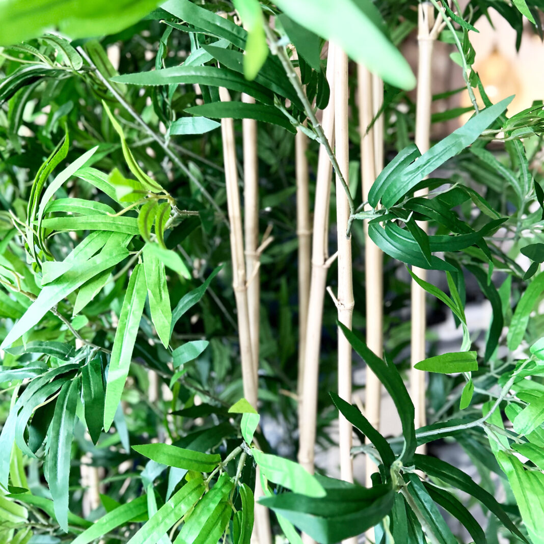 Create an instant sanctuary with the Set of 2 Artificial Bamboo Planter Screens. Perfect for adding privacy and a touch of nature to both indoor and outdoor spaces. Each set includes four lifelike bamboo trees, paired with two stylish planters that feature a sleek, modern design.