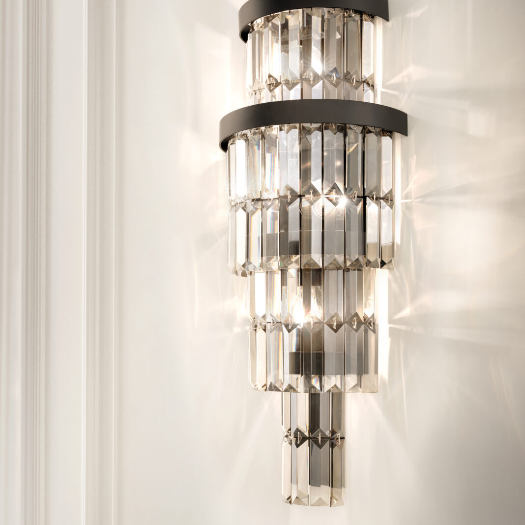 Smoked Cut Crystal Tiered Wall Light