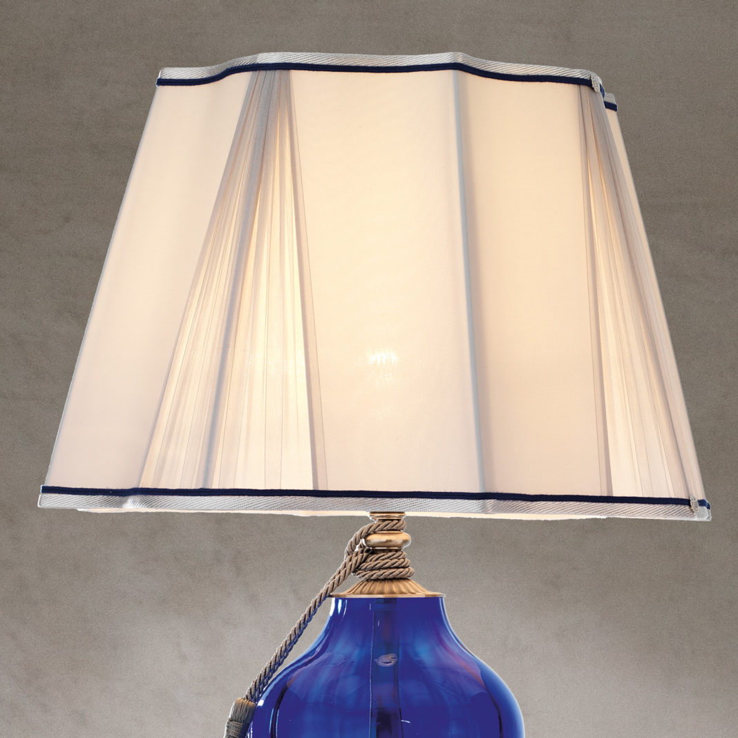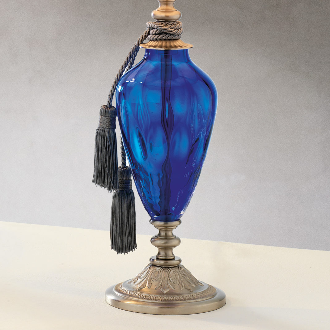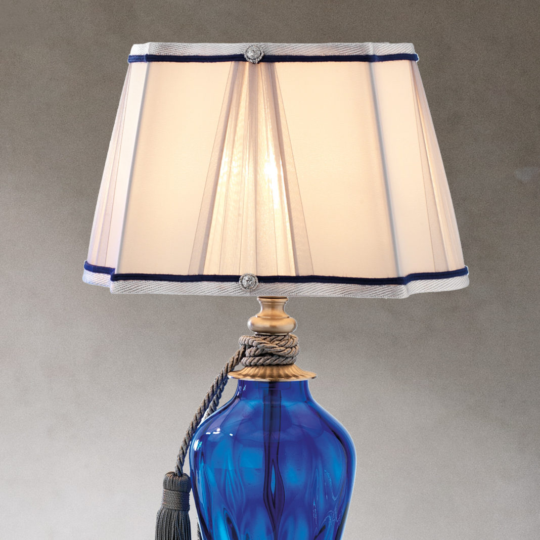 The Traditional Style Dimpled Blue Glass Table Lamp is an elegant focus, displaying rays of light. Stimulate the senses and create an atmosphere of class and purity with this wonderful sculptural lamp. Expertly handcrafted in unmistakably high quality hand blown glass that dazzles as it catches the light.