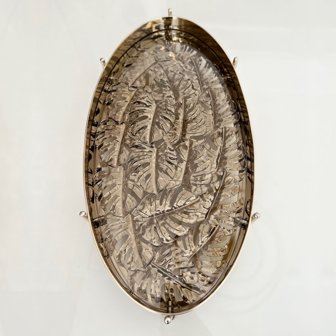 The Tropical Leaf Oval Tray With Feet is a striking focal point, featuring a unique design that adds both style and sophistication to any space. With its sleek, contemporary form and modern elegance, it makes a bold and refined statement that truly stands out.