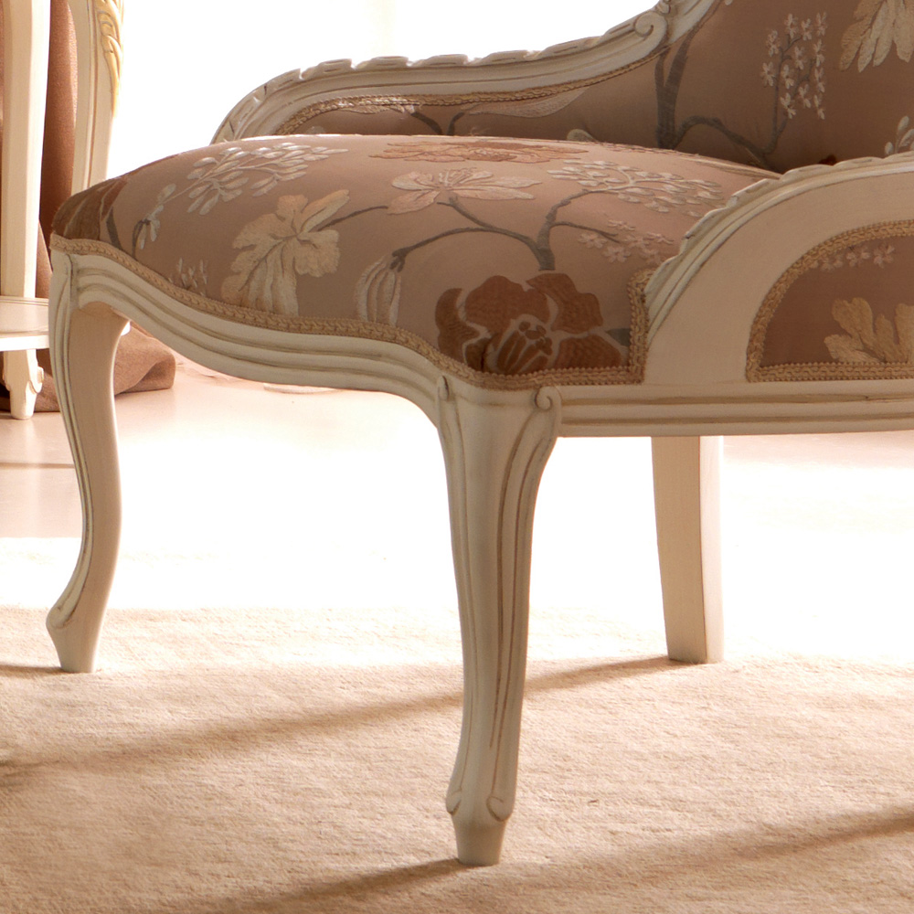 The Venetian Style Italian Armchair is a fabulous addition to any setting. Creating a beautiful focus. Shown here with an ivory painted finish and upholstered in a luxurious statement floral fabric. Height 98 x width 69 x depth 68 cm. Available to order in alternative fabrics, customers own fabric and finishes. Prices will vary. Also sofa available to match.